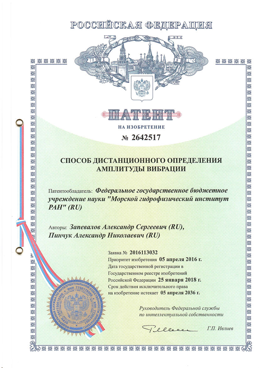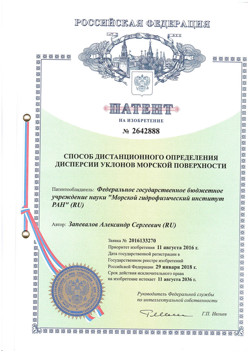 В 2018 г. по состоянию на сентябрь ФГБУН МГИ зарегистировало патенты на следующие изобретения: