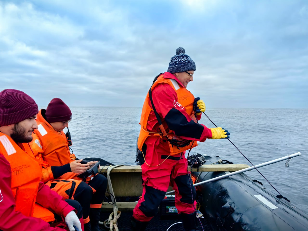 С 29 августа по 8 октября 2025 года проходила научно-исследовательская экспедиция «Плавучий университет», организованная МФТИ и ИО РАН. В экспедиции принимали участие 16 ученых и 22 студента из ведущих научных организаций и вузов России. Общая цель заключалась в исследовании крупномасштабных, синоптических и мезомасштабных гидрофизических процессов, а также изучении состава и функционирования планктонных и бентосных сообществ на шельфе и континентальном склоне морей российской Арктики.