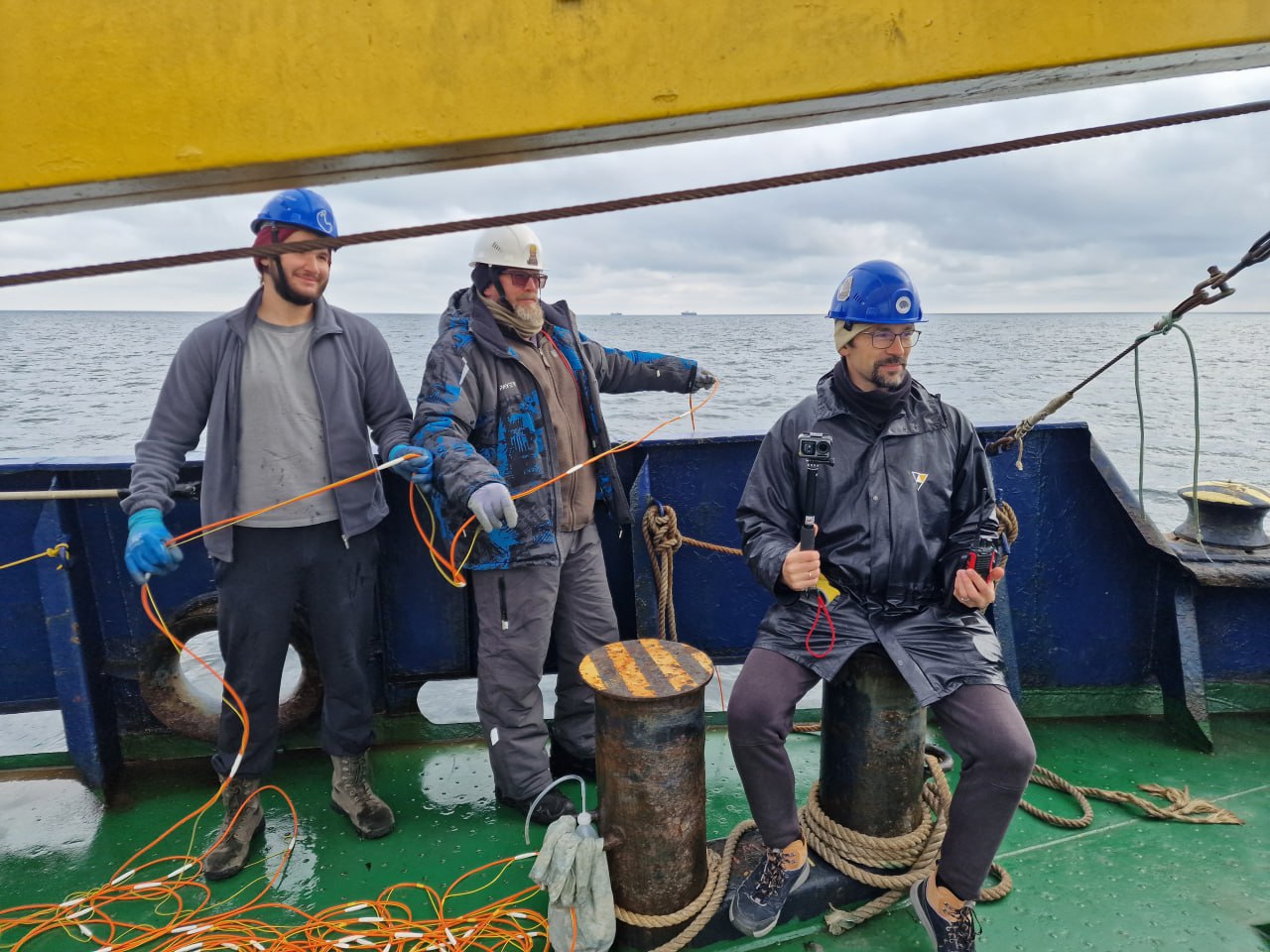 От Морского гидрофизического института в экспедиции участвовали пять специалистов: заведующий лабораторией морских полярных исследований, кандидат физико-математических наук Игорь Козлов, младший научный сотрудник той же лаборатории Илья Копышов, руководитель лаборатории гидрофизических измерений, кандидат технических наук Олег Кудинов, ведущий инженер службы экспедиционного обеспечения Сергей Шутов и ведущий инженер отдела гидрофизики шельфа Сергей Щербаченко.